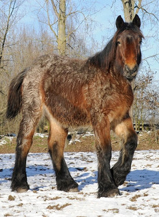 Stallion Selection: Knowing the strengths and weaknesses of your mare helps to select a stallion that will complement her. In addition to conformation, consider items such as the ancestry of sire and mare, to minimize inbreeding, any health testing that has been done, and whether the stallion has a Leg Health Report on file with the European Brabant Registry of America.